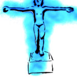Material: 3 beschriftete Emailletafeln mit verzinkten Stahlgestänge, Betonhocker