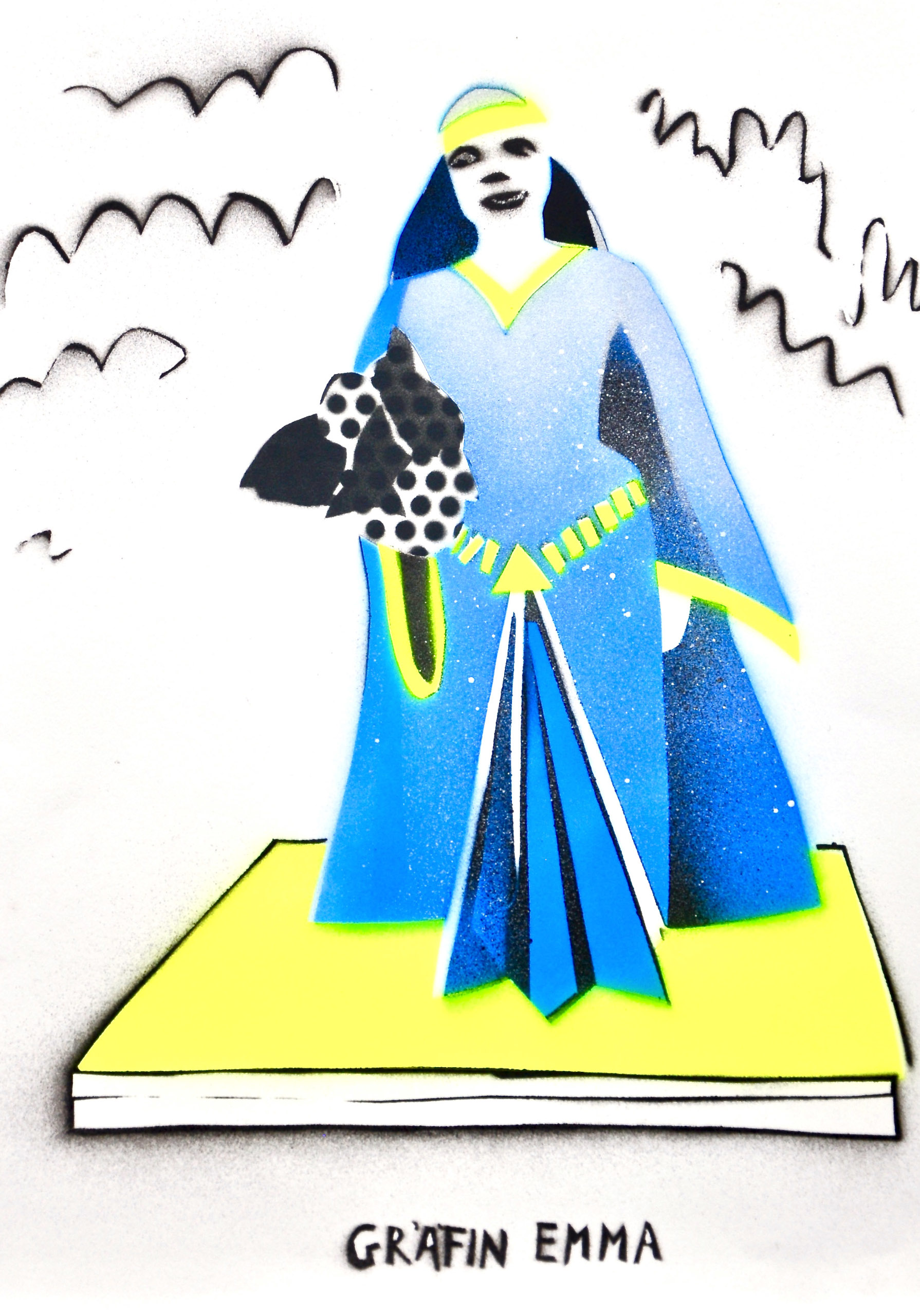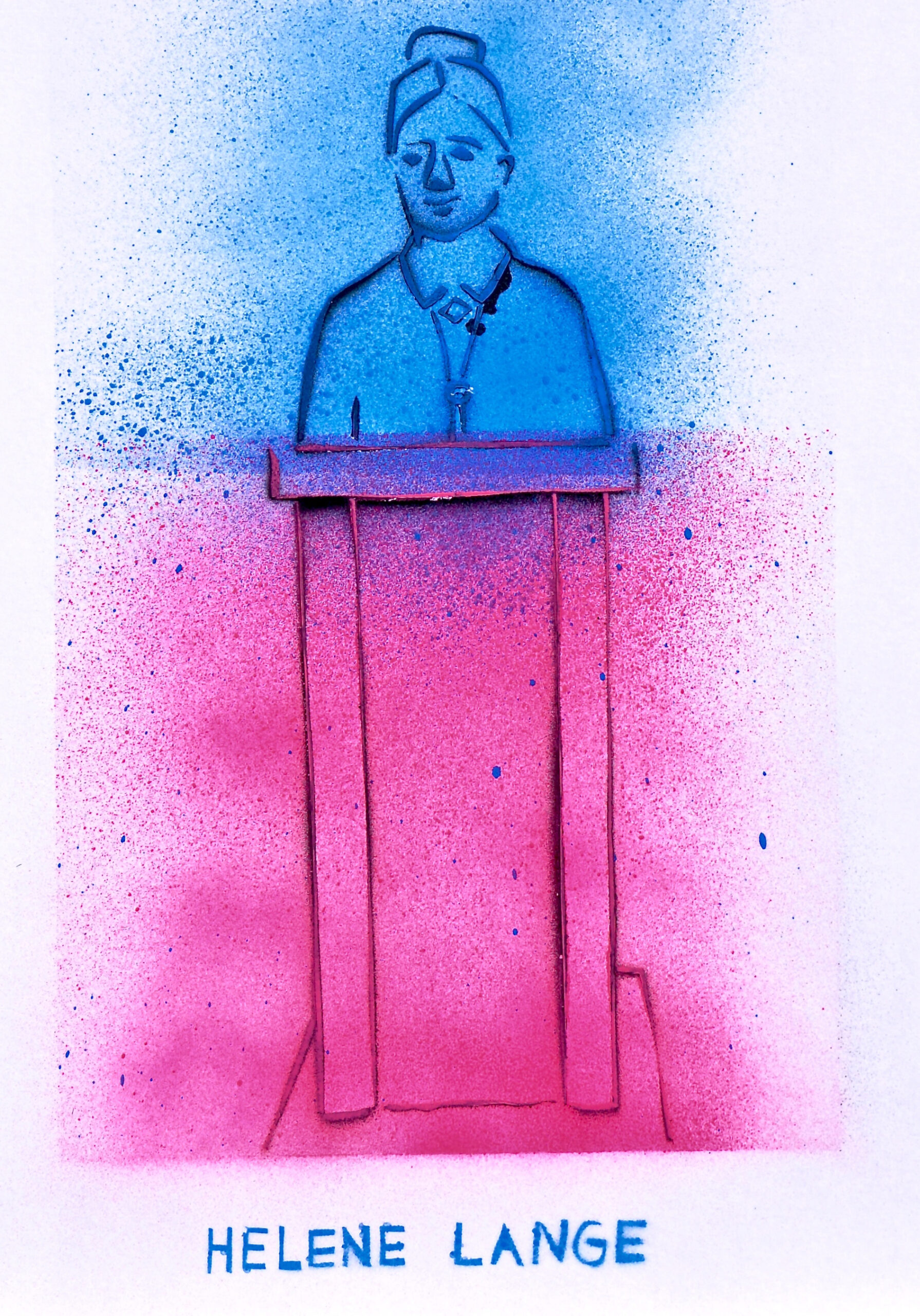 Seit 2020 beschäftigt ich mich mit der Recherche und der künstlerischen Interpretation von historischen Frauendenkmälern im öffentlichen Raum. Die Figuren stehen – anders als die bei Männern meist auf dem Boden und nicht auf hohen Sockeln. Es sind bereits mehr als 150 Bilder von Frauendenkmälern entstanden. Neben der künstlerischen Arbeit ist es ein Anliegen, die Fakten  mitzuliefern (Wann aufgestellt? Wer ist der/die Künstler*in? Finanzierung?) und eine Historie von Frauendenkmälern zu erstellen. Mein Archiv beinhaltet zum jeweiligen Frauendenkmal ein Foto, eine Zeichnung, ein Spraybild DIN A4 und einen Text.