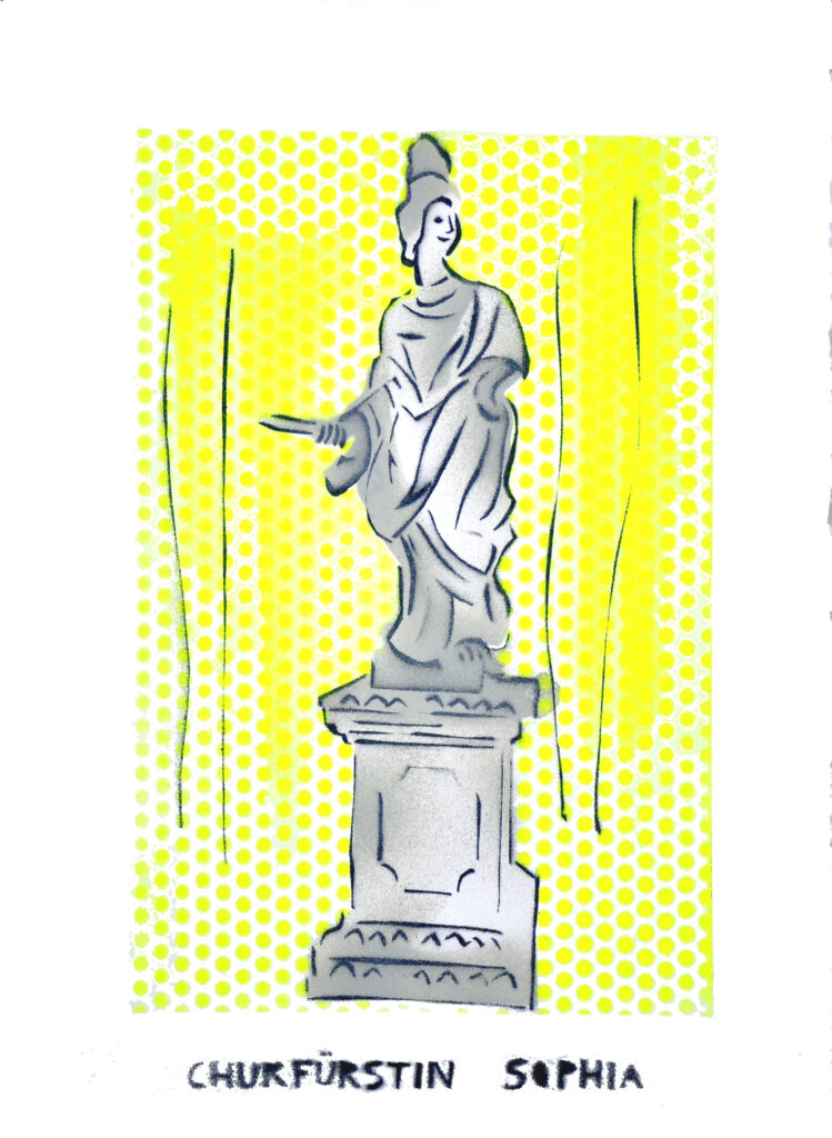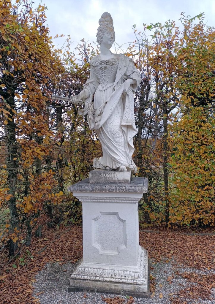 Sophie, Prinzessin von der Pfalz wurde bekannt als Sophie von Hannover. Durch ihre Heirat ins Haus der Welfen mit Herzog Ernst August wurde sie Herzogin zu Braunschweig und Lüneburg und Kurfürstin von Braunschweig-Lüneburg und ab 1701 designierte Thronfolgerin der britischen Monarchie. Schon früh interessierte sich Sophie für Gartengestaltung und besuchte viel Schlossparks und Gärten. Ab 1680 wurde der Große Garten unter ihrer Leitung neu gestaltet und erweitert. Neben den italienischen und französischen Reiseeindrücken war es vor allem die niederländische barocke Gartenkunst ihrer Jugend, die sie inspirierte.