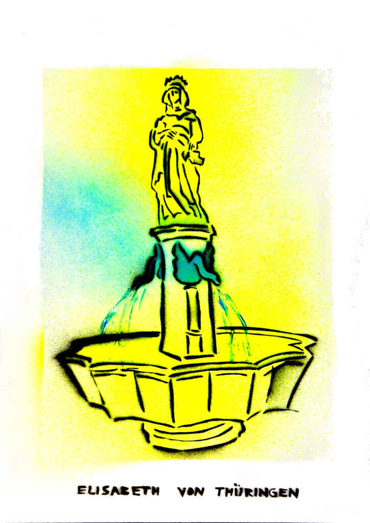 Elisabeth von Thüringen, auch Elisabeth von Ungarn genannt, ist eine ungarische Prinzessin und deutsche Landgräfin. Papst Gregor IX. spricht Elisabeth 1235 heilig. Das Ehepaar Elisabeth und Ludwig von Thüringen ist sich einig in der Hilfe für Bedürftige und Kranke, gründet u.a. das Hospital in Gotha und stattet es mit reichlich Besitz aus. Nach dem Tode Ludwigs 1227 kommt Elisabeth immer mehr unter den Einfluss des Priesters Konrad von Marburg, isoliert sich von ihrer Familie und zieht nach Marburg um, wo sie die letzten drei Jahre ihres Lebens als ärmliche Spitalschwester, jedoch mit dogmatischer Glaubensauffassung, verbringt.