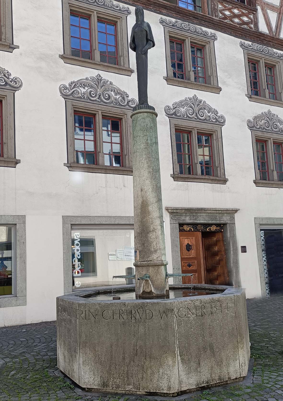 Material: Bronzefigur, Steinbrunnen