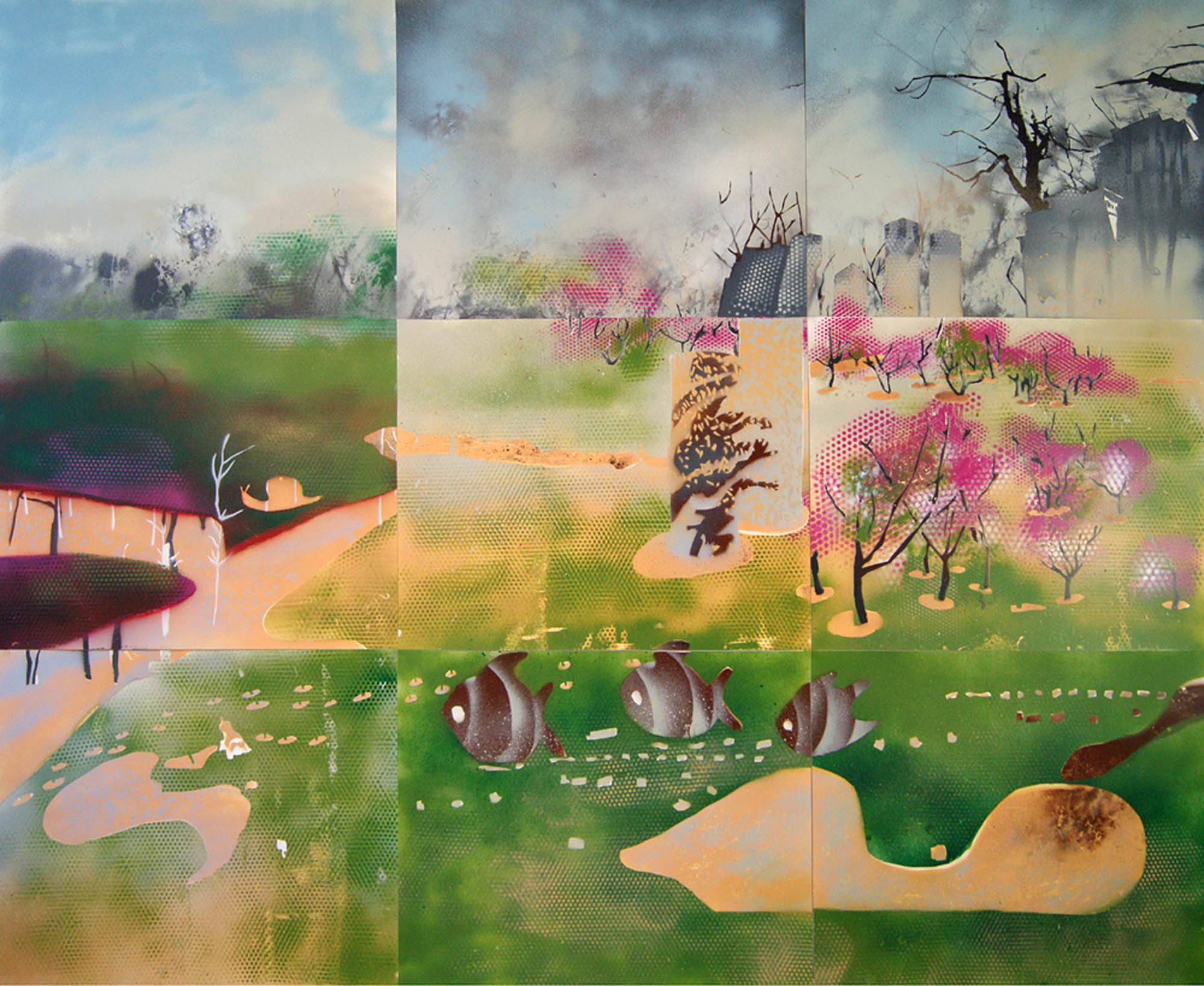 Park in Dalian2016Spray auf Papier, 9-teilig99 x 120 cm2 mal Details Seiten 1 2 3 4 5 6 7 8 9 10 11 12 13 14 15