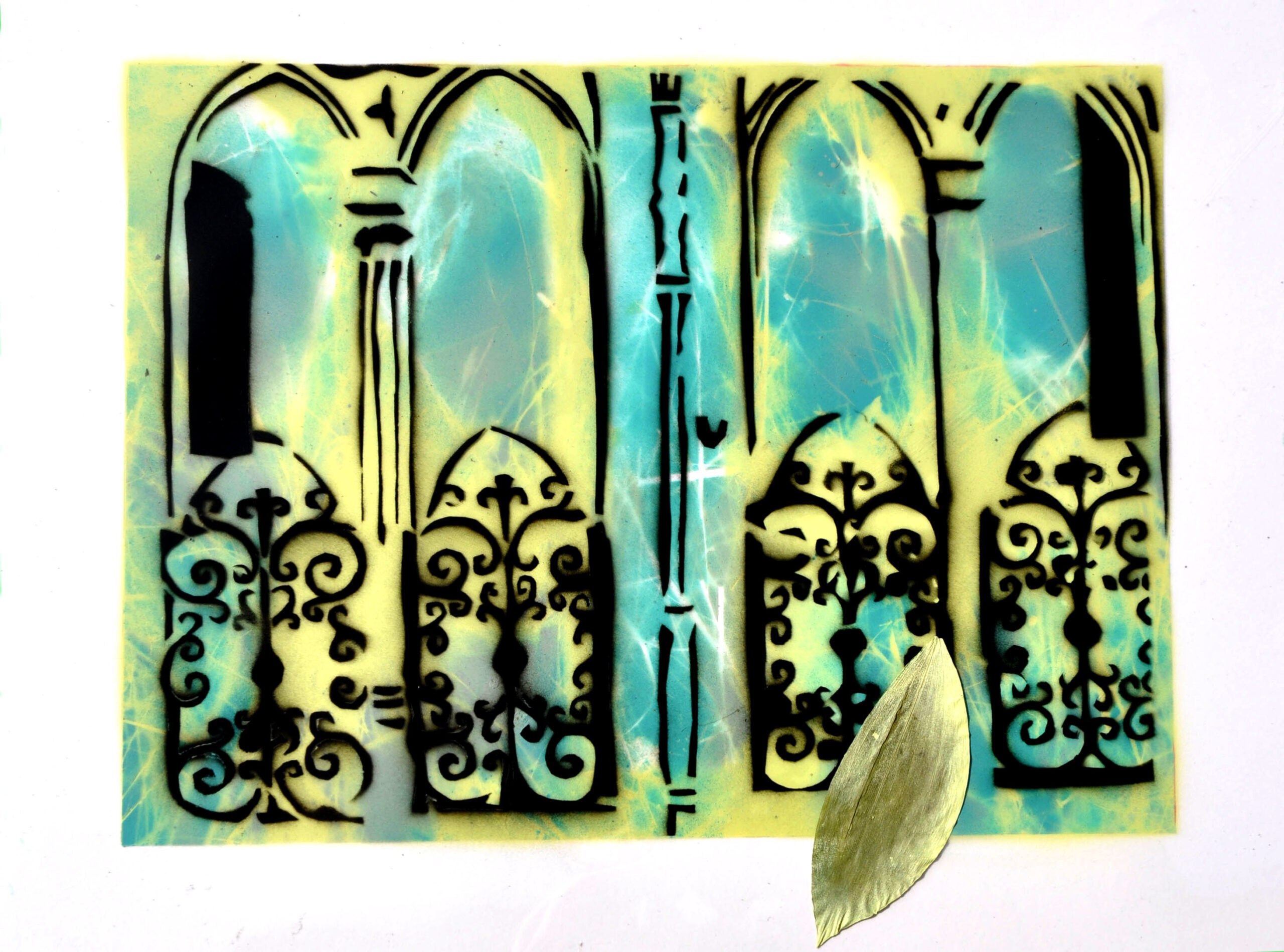 Grünes Fenster2018 Spray auf 3 Folien mit Objekt45 x 60 cm Seiten 1 2 3 4 5 6 7 8 9 10 11 12 13 14 15