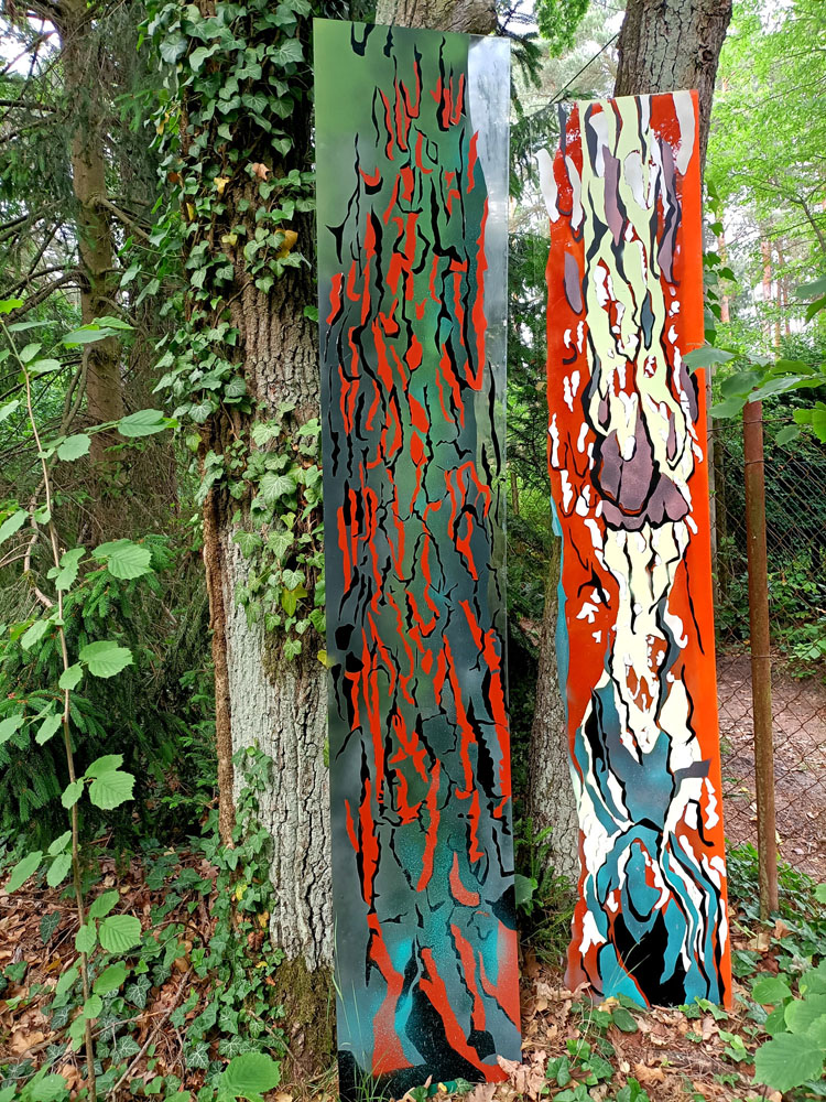 Kiefernstämme II, III 2024, 2025 Spray auf Acrylje 220 x 40 cm Seiten 1 2 3 4 5 6 7 8 9 10 11 12 13 14 15